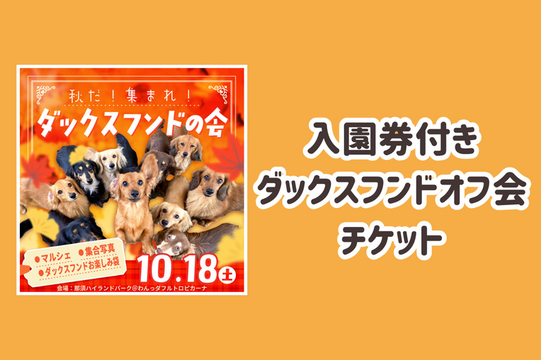 2025年10月18日(土)開催「秋だ!集まれ!ダックスフンドオフ会」の入園券付きオフ会参加チケットです。※乗り放題は含まれていません。